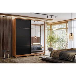 Guarda Roupa Solteiro 2 Portas de Correr 3 Gavetas c/ Espelho e Pés Belga Flex Amêndola/Amêndola ou Grafito - Demóbile