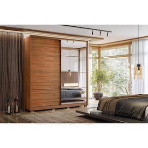 Guarda Roupa Solteiro 2 Portas de Correr 3 Gavetas c/ Espelho e Pés Belga Nogueira/Nogueira ou Preto - Demóbile Marca: Demóbile