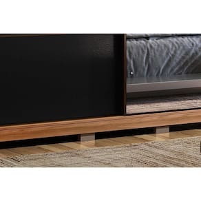 Guarda Roupas 2 Portas De Correr 3 Gavetas C/ Espelho E Pés Belga Nogueira/nogueira Ou Preto - Demóbile