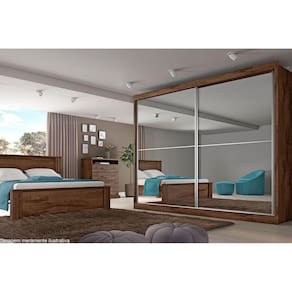 Guarda Roupas 2 Portas de Correr e 4 Gavetas c/ Espelho Verona Plus Amêndoa - Europa