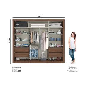Material dos Cabideiros - Cabideira Metálico Diferenciais das Portas - Fechamento c/ Freio Anti-Impacto Quantidade de Portas - 2 Portas de Correr Tipo de Corrediça - c/ Corrediças Telescópicas Quantidade de Gavetas - 4 Gavetas Quantidade de Prateleiras - 7