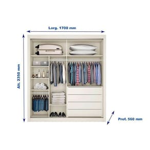 Dimensões(Cm): Comprimento(Profundidade): 56cm x Largura: 170cm x Altura: 235cm