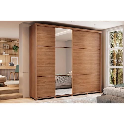 Material do Calceiro - Calceiro Metálico Tipo de Cabideiro - Aéreo Material dos Cabideiros - Cabideira Metálico Tipo de Porta do Guarda-Roupa - Portas de Correr Material das Portas - Portas em MDP Material do trilho da porta de correr - Trilho Metálico - Trilho Superior Metálico Diferenciais das Portas - Porta c/ Espelho Quantidade de Portas - 2 Portas de Correr Quantidade de Portas com Espelho - 1 Porta com Espelho Tipo de Espelho - Espelho Externo Quantidade de Espelhos - 3 Espelhos Material das Gavetas - Gavetas em MDP Tipo de Corrediça - c/ Corrediças Telescópicas Quantidade de Gavetas - 6 Gavetas Tipo dos Pés - ABS/PVC Quantidade de Pés - 10 Pés Material das Prateleiras - Prateleiras em MDP Quantidade de Prateleiras - 7 Quantidade de Nichos - 2 Nichos