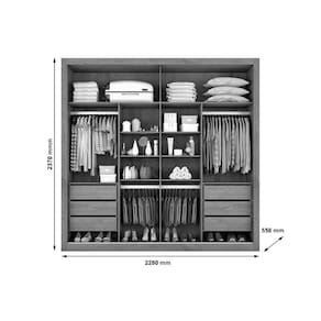 Dimensões(Cm): Comprimento(Profundidade): 55,8cm x Largura: 228cm x Altura: 237cm