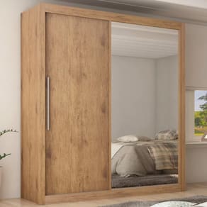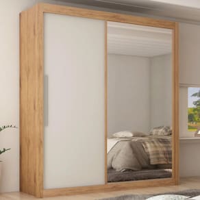 O roupeiro real se destaca pela praticidade das duas portas de correr, que contribuem para a otimização de espaço, contando com um amplo espaço interno, onde sua estrutura é formada por três gavetas, 4 prateleiras e espaço para vestidos e calças. O roupeiro real conta também com porta lateral de espelho trazendo mais sofisticação ao produto. O roupeiro real agrada pelo seu design compacto e arrojado e portas reversíveis o que possibilita até mais opções de montagem.