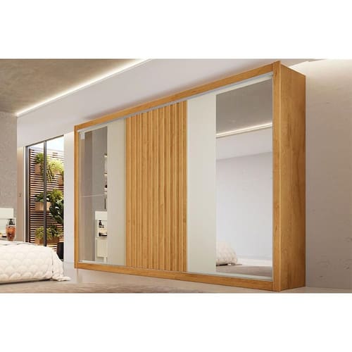 Tipo de Cabideiro - Aéreo Material dos Cabideiros - Cabideira Metálico Material do trilho da porta de correr - Trilho Metálico - Trilho Superior Metálico Diferenciais das Portas - Portas Ripadas - Porta c/ Espelho Quantidade de Portas - 3 Portas de Correr Tipo de Corrediça - c/ Corrediças Telescópicas Quantidade de Gavetas - 6 Gavetas Diferenciais das Gavetas - Gaveta com Chave Diferenciais das Prateleiras - Prateleira Removível Quantidade de Prateleiras - 7 Quantidade de Nichos - 8 nichos