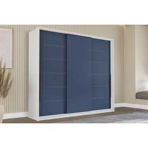 Guarda Roupa Casal 3 Portas de Correr e 4 Gavetas Lisboa Branco/Azul - Politorno