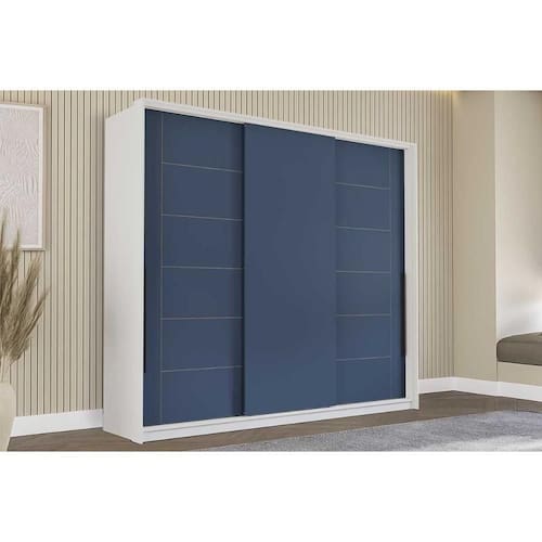 Guarda Roupas 3 Portas De Correr De E 4 Gavetas Lisboa Branco/azul - Politorno