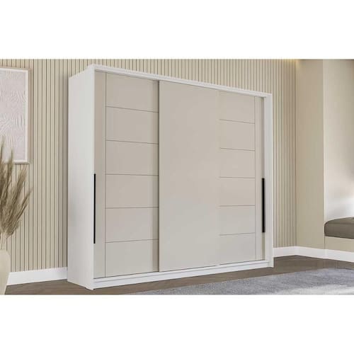 Guarda Roupas 3 Portas de Correr de e 4 Gavetas Lisboa Branco/Creme - Politorno - Blush
