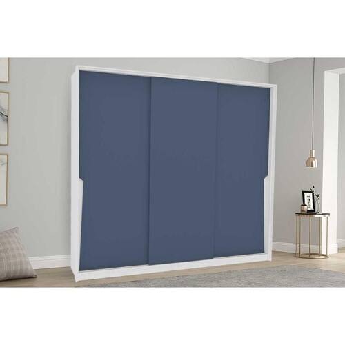 Guarda Roupas 3 Portas de Correr de e 4 Gavetas Porto Branco/Azul - Politorno - Blush