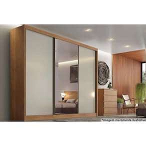 Guarda Roupas 3 Portas de Correr e 6 Gavetas c/ Espelho Natus Freijo Cumaru c/ Fendi - Novo Horizonte - Blush
