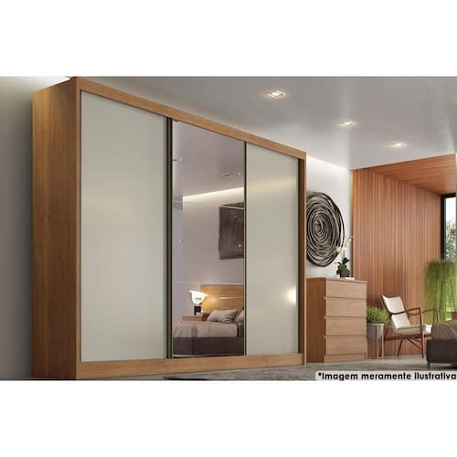 Guarda Roupa Casal 3 Portas de Correr e 6 Gavetas c/ Espelho Natus/Duna Freijo Cumaru c/ Fendi - Novo Horizonte