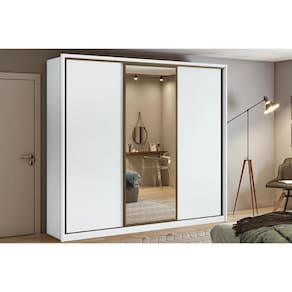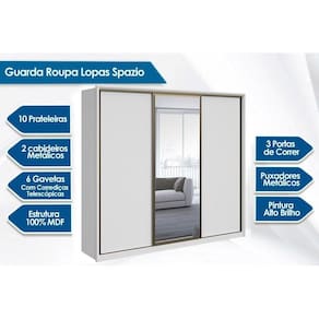 Guarda Roupa Casal 3 Portas de Correr e 6 Gavetas c/ Espelho Spazio Branco - Lopas
