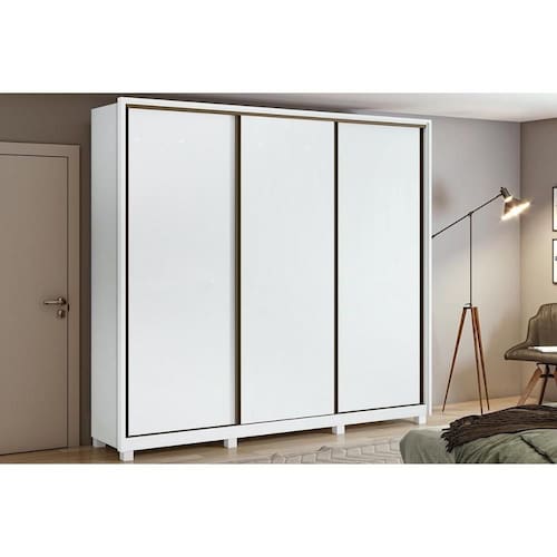 Guarda Roupa Casal 3 Portas de Correr e 6 Gavetas c/ Pés Spazio Branco - Lopas