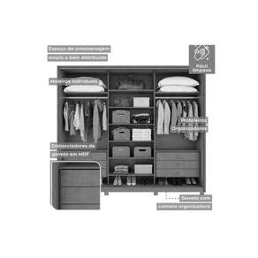 Material de Estrutura - MDF Tipo de Pintura - Ultravioleta Tipo de Acabamento da Pintura - Semi Brilho Diferenciais Guarda Roupas - Sapateira
