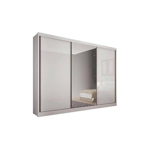 Guarda Roupa Casal 3 Portas de Correr e 8 Gavetas c/ 1 Espelho Diamond/Toulon Plus Branco - Novo Horizonte