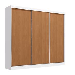Acabamento: Pintura Brilho / Pintura Touch / Fosco | Cor: Branco/Canela | Corrediças: Telescópicas | : 3 meses para defeito de fabricação | Gavetas: Internas | Matéria-prima: MDF | Peso suportado por cabideiro: 10 Kg | Peso suportado por cada prateleira: 7 kg | Puxadores: Alumínio | Quantidade de calceiros: 2 | Quantidade de gavetas: 4 | Quantidade de portas: 3 | Quantidade de prateleiras: 11 | Sistema de montagem: Parafuso Philips / Parafuso Philips e Minifix | Tipo de porta: Correr | Duração da : 3 meses | Montagem: Necessita montagem | Tipo de : do fabricante | Requer montagem: Sim | Materiais da estrutura: MDF