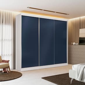 Deixe seu quarto ainda mais lindo, moderno e organizado com a linha de Guarda-Roupas 100% MDF R584 da Loja Oficial Kappesberg. Com o tamanho ideal para um quarto de casal, são 2,18m de altura, 2,45m de largura e 52cm de profundidade, todo produzido em chapa MDF de 15mm, o que garante mais robustez, durabilidade e um melhor acabamento. Com três portas de correr e quatro gavetas, o grande diferencial deste modelo fica por conta das portas reversíveis, podendo optar entre a cor canela ou azul profundo na hora de montar o seu guarda-roupa. Com pintura de sete camadas, tanto na parte interna quanto na externa, a caixaria possui pintura na cor branca, com acabamento brilho, enquanto as portas, possuem acabamento fosco, inclusive, a cor canela, conta com pintura touch, com a textura dos veios da madeira, proporcionando beleza e modernidade ao seu quarto. E para quem gosta de muito espaço, esse é o modelo perfeito. Com divisões internas iguais dos dois lados, ele possui nichos de tamanhos diferentes, ideais para guardar calçados e roupas dobradas nas prateleiras. Os cabideiros, metálicos e com suporte interno, são perfeitos para peças maiores, como casacos e vestidos. E nas gavetas, com corrediças telescópicas, você organiza acessórios e peças menores com facilidade, deixando seu ambiente sempre organizado. Nas portas, o destaque fica para o puxador em alumínio e o perfil metálico anti-empeno, garantindo mais durabilidade e resistência, sendo a opção perfeita para renovar seu quarto com a qualidade, modernidade e beleza dos Móveis Kappesberg.