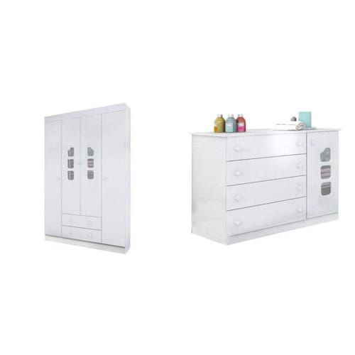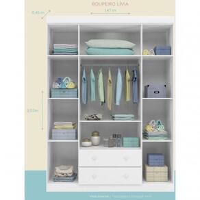 1x Guarda Roupa Infantil 4 Portas 2 Gavetas Lívia Branco Largura: 147 cm Altura: 203 cm Peso: 83 kg Profundidade: 45 cm Necessita Montagem: Sim