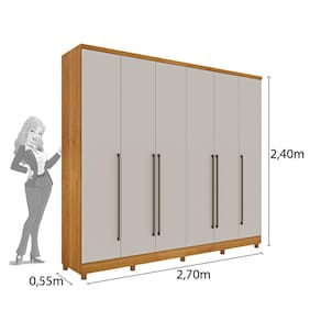 Guarda Roupa 6 portas Portugal possui design minimalista, destacando os belos puxadores em alumínio. Produzido em MDP, com espaço ele e ela, oito gavetas com corrediças metálicas, puxadores em alumínio de alto acabamento, oito prateleiras independentes, espaço para roupas longas, maleiro amplo, dobradiças 26mm. Acabamento da Prateleira: Pintura Escala de Brilho da Prateleira: Semi-Brilho Possui Cabideiros: 03 Acabamento da Gaveta: Pintura Escala de Brilho da Gaveta: Fosco Material do Puxador da Gaveta: Alumínio Possui Organizador de Gaveta: Não Acabamento da Porta: Pintura Escala de Brilho da Porta: Brilhante Material do Puxador da Porta: Alumínio Acabamento dos Pés: Pintura Altura dos Pés: 6 Ambiente Principal: Quarto Complexidade da Montagem: Média: pode ser montado por mais de uma pessoa e/ou necessite de maior conhecimento para montagem Cor: Cinamomo/Off White Cor do Produto: Cinamomo/Off White Escala de Brilho: Semi-Brilho Gaveta com Chave: Não Itens Inclusos: 1 Guarda Roupas, Kit Ferragens e Manual de Montagem. Manual de Montagem e Instalação: https://cdn2.madeiramadeira.com.br/atributo/tcil-moveis/790495-12921-esquema-de-montagem-roupeiro-6-portas-sevilla-8-gavetas.pdf Material da Gaveta: MDP Material da Porta: MDP Material da Prateleira: MDP Material dos Pés: PVC Material Principal: MDP Necessita Montagem: Sim Origem do Produto: Nacional Peso: 215.6 Peso Máximo por Gaveta: 10 Peso Máximo por Prateleira: 8 Possui Calceiros: 01 Possui Espelho: Não Possui Pés: 10 Possui Portas: 06 Possui Prateleiras: 12 Recomendações de Uso, Manutenção e Limpeza: Limpar com flanela ou pano macio seco, não utilizar produtos abrasivos, desengordurantes, álcool ou solvente. Não expor o produto diretamente à luz solar e à umidade. Sapatas Niveladoras: Não Sistema de Montagem: Parafusos e Cavilhas. Tipo de Corrediça da Gaveta: Metálica Simples Tipo de Dobradiça/Corrediça da Porta: Metálica Tipo de Gaveta: Interna Tipo de Guarda-Roupa: Casal Tipo de Puxador da Gaveta: Não Possui Tipo de Puxador da Porta: Externo