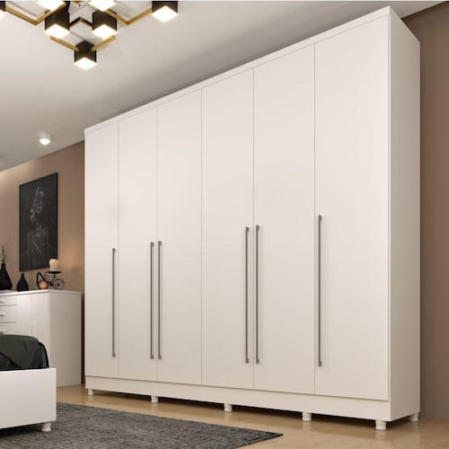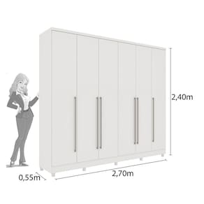 O Guarda Roupa 6 Portas Sevilla possui design minimalista, destacando os belos puxadores em alumínio. Produzido em MDP, com espaço ele e ela, 8 gavetas com corrediças metálicas, puxadores em alumínio de alto acabamento, 8 prateleiras independentes, espaço para longos, maleiro amplo, dobradiças 26mm. Acabamento da Prateleira: Pintura Escala de Brilho da Prateleira: Fosco Possui Cabideiros: 03 Acabamento da Gaveta: Pintura Escala de Brilho da Gaveta: Fosco Material do Puxador da Gaveta: Alumínio Possui Organizador de Gaveta: Não Acabamento da Porta: Pintura Escala de Brilho da Porta: Fosco Material do Puxador da Porta: Alumínio Acabamento dos Pés: Pintura Altura dos Pés: 6 Ambiente Principal: Quarto Complexidade da Montagem: Média: pode ser montado por mais de uma pessoa e/ou necessite de maior conhecimento para montagem Cor: Neve Cor do Produto: Neve Escala de Brilho: Fosco Gaveta com Chave: Não Itens Inclusos: 1 Guarda Roupas, Kit Ferragens e Manual de Montagem. Manual de Montagem e Instalação: https://cdn2.madeiramadeira.com.br/atributo/tcil-moveis/790495-12921-esquema-de-montagem-roupeiro-6-portas-sevilla-8-gavetas.pdf Material da Gaveta: MDP Material da Porta: MDP Material da Prateleira: MDP Material dos Pés: PVC Material Principal: MDP Necessita Montagem: Sim Origem do Produto: Nacional Peso: 2156 Peso Máximo por Gaveta: 10 Peso Máximo por Prateleira: 8 Possui Calceiros: 01 Possui Espelho: Não Possui Pés: 10 Possui Portas: 06 Possui Prateleiras: 12 Recomendações de Uso, Manutenção e Limpeza: Limpar com flanela ou pano macio seco, não utilizar produtos abrasivos, desengordurantes, álcool ou solvente. Não expor o produto diretamente à luz solar e à umidade. Sapatas Niveladoras: Não Sistema de Montagem: Parafusos e Cavilhas. Tipo de Corrediça da Gaveta: Metálica Simples Tipo de Dobradiça/Corrediça da Porta: Metálica Tipo de Gaveta: Interna Tipo de Guarda-Roupa: Casal Tipo de Puxador da Gaveta: Não Possui Tipo de Puxador da Porta: Externo