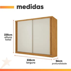 Importante sobre a : A é realizada até a portaria ou porta de entrada do indicado, desde que o acesso seja permitido. Para locais com portaria, a será feita no piso térreo. Não realizamos montagem, desmontagem, por escadas ou içamento. É responsabilidade do cliente verificar se as dimensões do produto são compatíveis com portas, elevadores e corredores. Evite imprevistos: confira todos os detalhes antes de concluir sua compra. MEDIDAS:: A = 235 cm L = 226 cm P = 56 cm | PRATELEIRAS SUPORTAM ATÉ:: 4 kg / 6 kg | GAVETAS SUPORTAM ATÉ:: 4 kg | CABIDEIROS SUPORTAM ATÉ:: 18 kg | PESO:: 225,2 kg | GUARDA ROUPAS SUPORTA ATÉ:: 110 kg | MODELO:: Guarda Roupas Casal 2 Portas de Correr 4 Gavetas 100% MDF Porto | MARCA:: Europa | TIPO DE PINTURA:: UV | MATERIAL DA ESTRUTURA:: MDF | ESPESSURA DO MATERIAL DA ESTRUTURA:: 15 mm | TIPO DE PORTA:: Correr, maior praticidade no dia a dia | QUANTIDADE DE PORTAS:: 2 | QUANTIDADE DE GAVETAS:: 4 | CORREDIÇAS:: Telescópicas, abertura suave | QUANTIDADE DE PRATELEIRAS:: 14 | QUANTIDADE DE CABIDEIROS:: 1 | MATERIAL DO CABIDEIRO:: Alumínio | MATERIAL DO PUXADOR:: MDF, embutido | PÉS:: 10 sapatas plásticas | DIFERENCIAL:: Portas de correr elegantes , Produto - escolha a cor da porta na hora da montagem, corrediças telescópicas de abertura suave. | ITENS INCLUSOS:: 1 Guarda Roupa, 1 Manual de montagem, 1 Kit Parafusos. | SISTEMA DE MONTAGEM:: Parafuso, minifix e cavilha | INSTRUÇÕES E CUIDADOS:: Para limpeza de seu móvel, use uma flanela limpa e seca. Não utilize produtos químicos que possam danificar o produto. | GARANTIA:: 3 Meses | AVISO:: Importante sobre a : A é realizada até a portaria ou porta de entrada do indicado, desde que o acesso seja permitido. Para locais com portaria, a será feita no piso térreo. | Altura: 235 cm | Inclui manual de montagem: Sim | Largura: 226 cm | Profundidade: 56 cm | Requer montagem: Sim | Altura da embalagem: 54 cm | Comprimento da embalagem: 240 cm | Largura da embalagem: 160 cm | Peso da embalagem: 22520 g | Tipo da embalagem: sem embalagem adicional | Cor: Madeirado/Off White