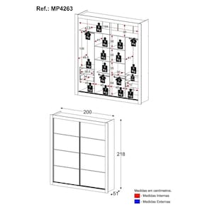 Altura 218cm | Largura 200cm | Profundidade 51cm
