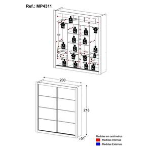 Conteúdo da Embalagem: 1 (um) Guarda-Roupas Kit Ferragem Manual de Montagem