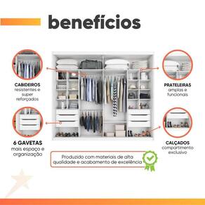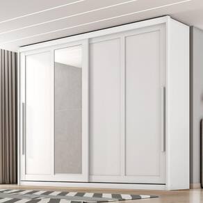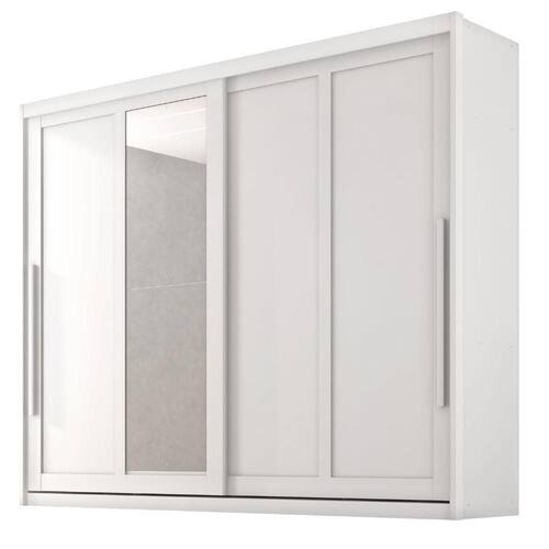 Guarda Roupas Casal 2 Portas De Correr Com Espelho 100% Mdf 6 Gavetas Firenze Branco