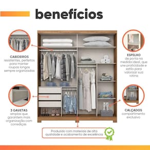 ITENS INCLUSOS: 1 Guarda Roupa, 1 Manual de montagem, 1 Kit Parafusos.