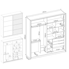 Dimensões do produto montado: Altura: 230cm | Largura: 217cm | Profundidade: 55cm *Você pode consultar as medidas detalhadas na imagem técnica do produto.
