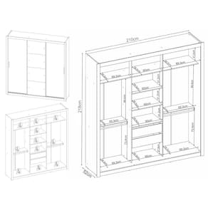 Dimensões do produto montado: Altura: 218cm | Largura: 210cm | Profundidade: 52cm *Você pode consultar as medidas detalhadas na imagem técnica do produto.
