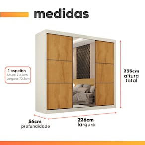 MODELO: Guarda Roupas Casal 3 Portas de Correr Com Espelho 6 Gavetas Argel