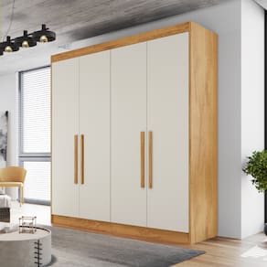 Guarda Roupas Casal 4 Portas 3 Gavetas 100% MDF Tunis - Bege | Marrom