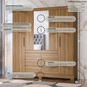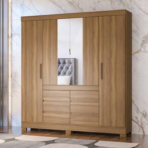 Guarda-roupas Casal 4 Portas 6 Gavetas E Espelhos Multimóveis Cr35192 Amêndola Amêndola O Guarda-Roupas Casal 4 Portas 6 Gavetas e Espelhos Multimóveis CR35192 é a escolha perfeita para quem busca organização e elegância num só móvel. Sua estrutura em MDP garante durabilidade e resistência, enquanto o acabamento em pintura UV confere um toque de sofisticação ao ambiente. Com 4 portas, 6 gavetas externas com corrediças metálicas, prateleiras internas e cabideiros metálicos, oferece ampla capacidade de armazenamento para suas roupas e acessórios. As portas centrais possuem puxadores metálicos e espelhos que embelezam o móvel e o ambiente. Além disso, conta puxadores em ABS e pés em PVC que protegem contra umidade e facilitam a limpeza do ambiente. Conteúdo da Embalagem: 1 (um) Guarda-Roupa Manual de Montagem Kit Ferragem