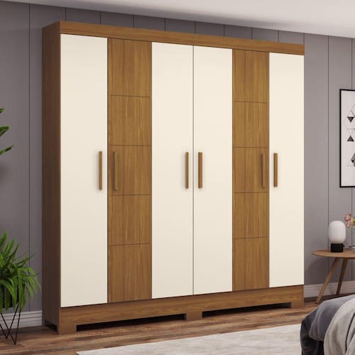 Introduzindo o guarda-roupas 6 portas da linha B73. Este elegante e funcional móvel de armazenamento é perfeito para quem busca praticidade e estilo em um só produto. Com detalhes de frisos nas portas, nosso guarda-roupas traz um toque de sofisticação ao seu ambiente. Os puxadores em MDF revestidos são cuidadosamente selecionados para combinar perfeitamente com o design do guarda-roupas, agregando um charme especial. Além disso, as duas gavetas oferecem espaço adicional para guardar roupas íntimas, acessórios e outros itens pessoais. Com o guarda-roupas 6 portas da linha B73, você terá um espaço amplo e organizado para guardar suas roupas e acessórios, além de adicionar um toque de elegância ao seu quarto. Acabamento da Prateleira: Pintura Texturizada UV Escala de Brilho da Prateleira: Fosco Possui Cabideiros: 02 Acabamento da Gaveta: Pintura Texturizada UV Escala de Brilho da Gaveta: Fosco Possui Organizador de Gaveta: Não Acabamento da Porta: Pintura Texturizada UV Escala de Brilho da Porta: Fosco Altura dos Pés: 5 Altura Máxima dos Pés: 5.0000 Ambiente Principal: Quarto codigo_ean: 7909903336977 Complexidade da Montagem: Média: pode ser montado por mais de uma pessoa e/ou necessite de maior conhecimento para montagem Cor: Marrom/Off White Cor do Produto: Marrom/Off White Cor Interna: Trama Escala de Brilho: Fosco Gaveta com Chave: Não Guarda-Roupa Suporta Até (kg): 62 kg Informações Complementares: • Portas com detalhes em frisos; • Puxadores de MDF revestidos; • 2 Cabideiros e calceiro resistentes de madeira revestidos; • Frentes de MDP 15 mm. Itens Inclusos: 1 Guarda Roupas, Kit Ferragens e Manual de Montagem Linha ou Coleção: B73 Manual de Montagem e Instalação: https://product-hub-prd.madeiramadeira.com.br/855398/documents/41d13fc2-e45d-4f55-b9cb-3fcda6d9b95a1375472b73roupeiro6pts2gav.pdf Material da Gaveta: MDP Material da Porta: MDP Material da Prateleira: MDP Material dos Pés: ABS Material Principal: MDP Necessita Montagem: Sim Origem do Produto: Nacional Peso: 85 kg Peso Máximo por Gaveta: 3 kg Peso Máximo por Prateleira: 8 kg Possui Calceiros: 01 Possui Espelho: Não Possui Pés: 08 Produto Montado: Sim Recomendações de Uso, Manutenção e Limpeza: Para limpeza de seu móvel, use uma flanela seca ou umedecida. Não utilize produtos químicos que possam danificar o produto. Sapatas Niveladoras: Não Sistema de Montagem: Parafusos e Cavilhas Tipo de Corrediça da Gaveta: Metálica Simples Tipo de Dobradiça/Corrediça da Porta: Metálica Tipo de Gaveta: Interna Tipo de Guarda-Roupa: Casal Tipo de Puxador da Gaveta: Não Possui Tipo de Puxador da Porta: Não Possui - Abertura por Fecho Toque