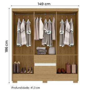 MEDIDAS:: [ A ] = 186 cm [ L ] = 149 cm [ P ] = 41,3 cm | MEDIDA DOS PÉS:: [ A ] = 05 cm [ L ] = 10 cm [ P ] = 04 cm | PESO SUPORTADO:: 55 Kg | PESO:: 65,45 Kg | GAVETAS SUPORTAM ATÉ:: 05 Kg | PRATELEIRAS SUPORTAM ATÉ:: 06 Kg | CABIDEIROS SUPORTAM ATÉ:: 06 Kg | MODELO:: Guarda Roupas Casal 6 Portas 2 Gavetas Coimbra | MARCA:: Aramóveis | MATERIAL:: MDP e HDF 12 e 15 mm | PINTURA:: UV | ACABAMENTO:: Verniz | QUANTIDADE DE PORTAS:: 6 | TIPO DE PORTA:: Bater | QUANTIDADE DE GAVETAS:: 02 | QUANTIDADE DE PRATELEIRAS:: 03 | QUANTIDADE DE CABIDEIRO:: 1 com 3 divisórias | MATERIAL DO CABIDEIRO:: Madeira revestida com PVC | MATERIAL DA DOBRADIÇA:: Metálica | MATERIAL DAS CORREDIÇAS:: Telescópicas | QUANTIDADE DE PÉS:: 06 | TIPO DE PÉS:: Quadrados | MATERIAL DOS PÉS:: PVC | GARANTIA:: 3 Meses | INSTRUÇÕES E CUIDADOS:: Utilizar panos secos, não utilizar produtos abrasivos ou químicos, manter longe do contato com água | DIFERENCIAL:: Puxadores em MDF, pés em PVC, gavetas com corrediças telescópicas | AVISO:: A Esplanada Móveis se responsabiliza pela entrega dos produtos adquiridos até a porta de entrada ou portaria do endereço indicado, se a portaria do condomínio permitir, as entregas são efetuadas no piso térreo e é de responsabilidade do cliente. | LARGURA: 149 | ALTURA: 186 | PROFUNDIDADE: 41,3 | COR: MARROM Cor: Madeir/Off