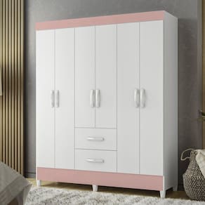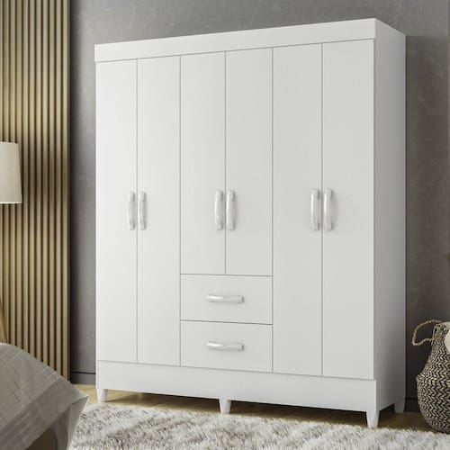 O Guarda Roupa Mobi possui 6 portas e 2 gavetas externas, cabideiros e prateleiras para acomodar as suas roupas, sapatos e objetos pessoais. Esse produto proporciona um melhor aproveitamento de espaço, garantindo charme ao seu quarto. Acabamento da Prateleira: Pintura UV Escala de Brilho da Prateleira: Fosco Possui Cabideiros: Sim Acabamento da Gaveta: Pintura UV Escala de Brilho da Gaveta: Fosco Material do Puxador da Gaveta: ABS Possui Organizador de Gaveta: Não Acabamento da Porta: Pintura UV Escala de Brilho da Porta: Fosco Material do Puxador da Porta: ABS Acabamento dos Pés: Pintura Altura dos Pés: 5 cm Ambiente Principal: Quarto codigo_ean: 7909903361580 Complexidade da Montagem: Alta: deve ser montado por um montador especializado Cor: Branco Fosco Cor do Produto: Branco Fosco Cor Flex: Branco Fosco Liso/Rosa Matte Cor Interna: Branco Escala de Brilho: Fosco Gaveta com Chave: Não Guarda-Roupa Suporta Até (kg): 23 kg Itens Inclusos: 1 Guarda Roupas, Manual de Montagem e Kit Ferragens Linha ou Coleção: Albatroz Manual de Montagem e Instalação: https://product-hub-prd.madeiramadeira.com.br/860196/documents/ad785bc8-cb57-4ead-8128-c8f7eaf9536934esquema8695grmobi6portas.pdf Material da Gaveta: MDP Material da Porta: MDP Material da Prateleira: MDP Material dos Pés: ABS Material Principal: MDP modular: Não Montagem Flex: Sim Necessita Montagem: Sim Origem do Produto: Nacional Peso: 60,5 kg Peso Máximo por Gaveta: 3 kg Peso Máximo por Prateleira: 3 kg Possui Calceiros: Não Possui Espaço para Vestidos Longos: Não Possui Espelho: Não Possui Espelho Interno: Não Possui Ganchos: Não Possui iluminação: Não Possui Nichos: Não Possui Painel de TV: Não Possui Pés: 06 Possui Portas: Sim Possui Prateleiras: Sim Possui Sapateira: Sim Produto Montado: Sim Quantidade de Gavetas: 02 Gavetas Quantidade de Prateleiras: 02 Prateleiras Recomendações de Uso, Manutenção e Limpeza: Limpar com flanela ou pano macio seco, não utilizar produtos abrasivos, desengordurantes, álcool ou solvente. Não expor o produto diretamente à luz solar e à umidade. Sistema de Montagem: Parafusos, cavilhas e minifix Suporta Até (kg): 23 kg Tipo de Corrediça da Gaveta: Metálica Simples Tipo de Dobradiça/Corrediça da Porta: Metálica Tipo de Gaveta: Interna Tipo de Guarda-Roupa: Casal Tipo de Puxador da Gaveta: Externo Tipo de Puxador da Porta: Externo