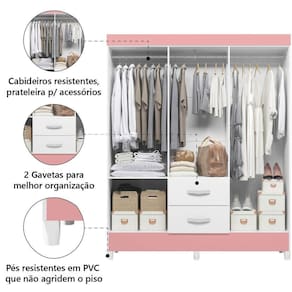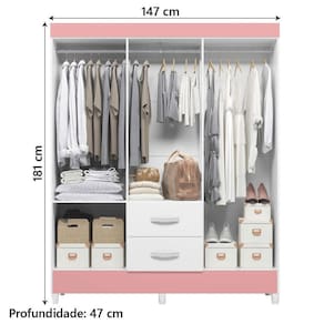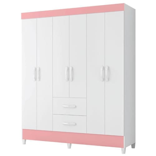 MEDIDAS:: [ A ] = 181 cm [ L ] = 147 cm [ P ] = 47 cm | MODELO:: MOBI 6 PORTAS | COR:: Branco / Rosa | ACABAMENTO:: Pintura UV | MATERIAL DA ESTRUTURA:: MDP | ESPESSURA DO MATERIAL:: 12mm | TIPO DE PORTA:: Bater | DOBRADIÇA:: Metálicas | GAVETAS:: 2 | MARCA:: Albatroz | PORTAS:: 6 | MATERIAL DO PUXADORES:: ABS | CABIDEIROS:: 3 | MATERIAL DOS CABIDEIROS:: Madeira | MATERIAL DOS PÉS:: PVC | PÉS:: 6 | PESO SUPORTADO:: 23kg | PESO:: 62,13kg | GAVETAS SUPORTAM ATÉ:: 3kg | PRATELEIRAS:: 2 | GARANTIA:: 3 Meses | AVISO:: A Esplanada Móveis se responsabiliza pela entrega dos produtos adquiridos até a porta de entrada ou portaria do endereço indicado, se a portaria do condomínio permitir, as entregas são efetuadas no piso térreo | ALTURA: 181 cm Cor: Bc Bc Ros