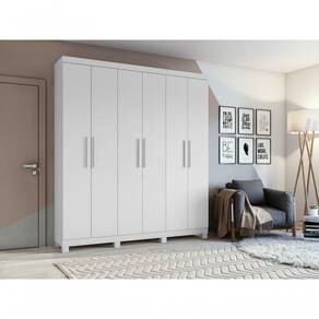 Guarda-roupas Casal 6 Portas 3 Gavetas Jazz Com Pés Sem Espelho Branco