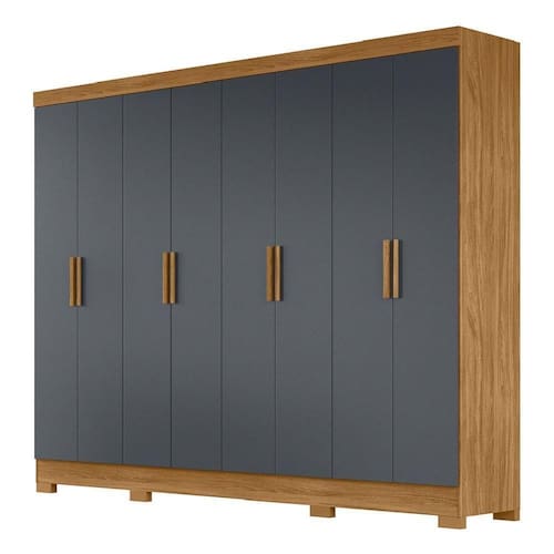 O Guarda-Roupa Casal Moval Diplomata é produzido com materiais de alta qualidade e resistência e apresenta um belo design com 8 portas de bater, puxadores em MDF e pés em PVC. Possui ótima divisão interna (ele/ela), cabideiro, prateleiras e 4 gavetas com corrediças metálicas que vão comportar perfeitamente roupas, acessórios e calçados do casal. MODELO: Guarda Roupas Casal 8 Portas 4 Gavetas Diplomata Moval MARCA: Moval COR: Freijó / Cinza MEDIDAS: [ A ] = 212 cm [ L ] = 236 cm [ P ] = 47 cm MATERIAL: MDP de 12 a 15mm ACABAMENTO: Pintura Uv PORTAS: 8 Portas GAVETAS: 4 Gavetas MEDIDA DAS GAVETAS: [ A ] = 11 cm [ L ] = 47 cm [ P ] = 34 cm PRATELEIRAS: 10 Prateleiras DOBRADIÇAS: Metálicas PUXADORES: MDF CABIDEIROS: Sim QUANTIDADE DE CABIDEIRO: 2 Cabideiros CORREDIÇA: Metálicas PÉS: 8 Pés PRATELEIRAS SUPORTAM ATÉ: 6 Kg GAVETAS SUPORTAM ATÉ: 6 Kg PESO: 142,42Kg GARANTIA DE FABRICA: 6 Meses DIFERENCIAL: Produzido em MDP de alta qualidade; Acabamento de pintura em UV 8 portas com dobradiças metálicas; Montagem não inclusa. Entregamos até a porta de entrada da casa do cliente ou até a portaria do condomínio. MODELO:: Guarda Roupas Casal 8 Portas 4 Gavetas Diplomata Moval | MARCA:: Moval | COR:: Freijó / Cinza | MEDIDAS:: [ A ] = 212 cm [ L ] = 236 cm [ P ] = 47 cm | MATERIAL:: MDP de 12 a 15mm | ACABAMENTO:: Pintura Uv | PORTAS:: 8 Portas | GAVETAS:: 4 Gavetas | MEDIDA DAS GAVETAS:: [ A ] = 11 cm [ L ] = 47 cm [ P ] = 34 cm | PRATELEIRAS:: 10 Prateleiras | DOBRADIÇAS:: Metálicas | PUXADORES:: MDF | CABIDEIROS:: Sim | QUANTIDADE DE CABIDEIRO:: 2 Cabideiros | CORREDIÇA:: Metálicas | PÉS:: 8 Pés | PRATELEIRAS SUPORTAM ATÉ:: 6 Kg | GAVETAS SUPORTAM ATÉ:: 6 Kg | PESO:: 142,42Kg | GARANTIA DE FABRICA:: 6 Meses | DIFERENCIAL:: Produzido em MDP de alta qualidade; Acabamento de pintura em UV 8 portas com dobradiças metálicas. | AVISO:: Montagem não inclusa. Entregamos até a porta de entrada da casa do cliente ou até a portaria do condomínio. Cor: Castanho / Cinza