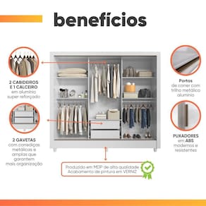 Guarda Roupas Casal Com 3 Portas De Correr 2 Gavetas França Andirá Branco