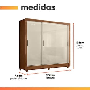 Importante sobre a entrega: A entrega é realizada até a portaria ou porta de entrada do endereço indicado, desde que o acesso seja permitido. Para locais com portaria, a entrega será feita no piso térreo. Não realizamos montagem, desmontagem, transporte por escadas ou içamento. É responsabilidade do cliente verificar se as dimensões do produto são compatíveis com portas, elevadores e corredores. Evite imprevistos: confira todos os detalhes antes de concluir sua compra. MEDIDAS:: [ A ] = 191 cm [ L ] = 172 cm [ P ] = 46 cm | PESO:: 81,05kg | PESO SUPORTADO:: 77kg | PRATELEIRAS SUPORTAM ATÉ:: 8kg | GAVETAS SUPORTAM ATÉ:: 3kg | MODELO:: Guarda Roupas Casal com 3 Portas de Correr 2 Gavetas França | MARCA:: Santos Andirá | ACABAMENTO:: Verniz Brilhante | MATERIAL DA ESTRUTURA:: MDP/MDF | ESPESSURA DO MATERIAL:: 12/15mm | PORTAS:: 3 | TIPO DE PORTA:: Correr | POSSUI ESPELHO:: Não | GAVETAS:: 2 | CORREDIÇA:: Metálicas | PRATELEIRAS:: 5 | MATERIAL DO PUXADORES:: ABS | CABIDEIROS:: 3 | MATERIAL DOS CABIDEIROS:: Alumínio | PÉS:: 6 | MATERIAL DOS PÉS:: PVC | INSTRUÇÕES E CUIDADOS:: Utilizar panos secos ou úmidos, não utilizar produtos abrasivos ou químicos. | SISTEMA DE MONTAGEM:: Parafusos, Cavilha, Minifix. | GARANTIA:: 3 Meses. | AVISO:: Importante sobre a entrega: A entrega é realizada até a portaria ou porta de entrada do endereço indicado, desde que o acesso seja permitido. Para locais com portaria, a entrega será feita no piso térreo. | Altura: 191 | Inclui manual de montagem: Sim | Largura: 172 | Materiais da estrutura: MDP | Profundidade: 46 | Requer montagem: Sim | Cor: Madeirado/Off White