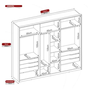 Altura: 230cm | Largura: 267cm | Profundidade: 55cm