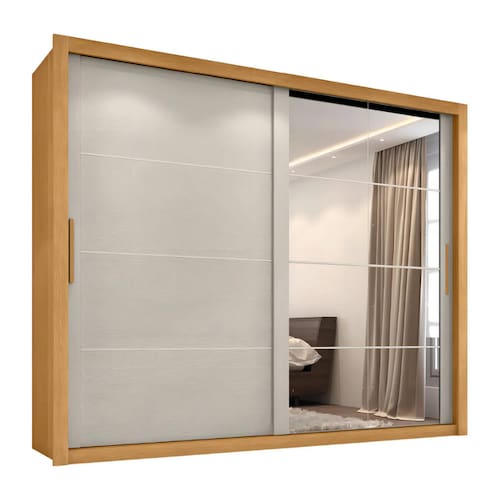 O Guarda Roupa Modena foi desenvolvido para aliar praticidade e elegância, proporcionando um espaço amplo e bem distribuído para organizar suas roupas, edredons, travesseiros e calçados com eficiência. Seu design moderno e sofisticado conta com duas portas de correr, sendo uma delas com um espelho amplo, agregando funcionalidade e sofisticação ao ambiente. Com seis gavetas espaçosas, as duas primeiras de cada lado possuem divisórias inteligentes, para armazenar pequenos itens com mais organização. Além disso, suas corrediças telescópicas garantem uma abertura suave e completa, proporcionando mais conforto no uso diário! O Guarda Roupa Modena é a escolha perfeita para quem busca beleza, qualidade e durabilidade em um único móvel.