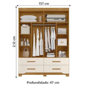 Modelo: Guarda-Roupas Casal com Espelho 4 Portas 4 Gavetas Miami