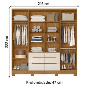 Modelo: Guarda-Roupas Casal com Espelho 6 Portas 6 Gavetas San Francisco