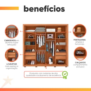 ITENS INCLUÍDOS: 01 Guarda Roupas, 01 manual de montagem e Kit parafusos