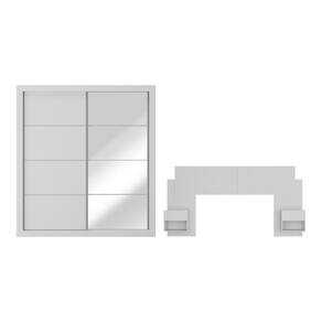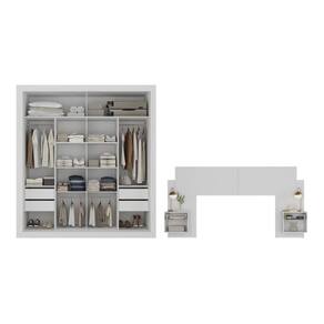 Nome do Produto no Fornecedor: Guarda-Roupas Casal Espelho e Cabeceira com 2 Mesas de Cabeceira Multimóveis MP4327 Branco