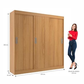 Tamanho do produto montado: - Altura: 180 cm | Largura: 150 cm | Profundidade: 40 cm. Produto em MDP, possui 2 gavetas e 3 Portas de corre não possui espelho.